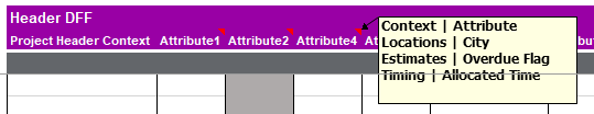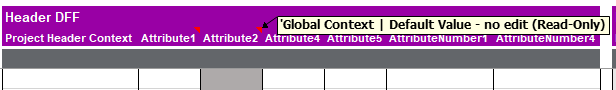 To know what each column is on the sheet, simply hover over the column name, this will show if the column is a Global DFF or a Context driven one. The images below show the column labels respectively.