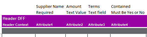 If DFF labels need to be more visible, we recommend using rows 1-7 above to indicate the attribute names. Note, using the Copy Active Sheet functionality will retain any values entered in this location.