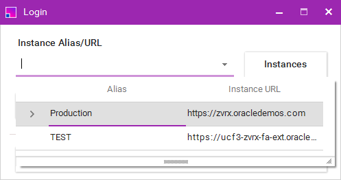 2. Select an instance from the dropdown list on the form.